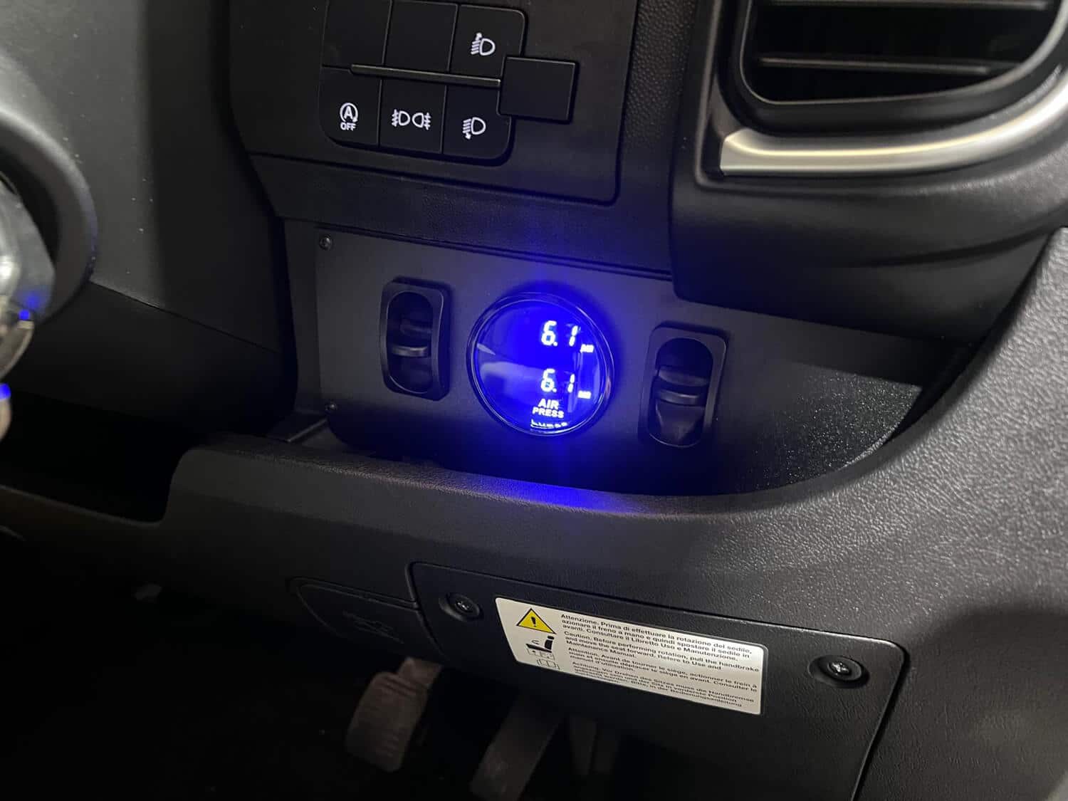 Adjusting the vehicle’s level can also be done from inside for a quick and convenient solution. The onboard control system, connected to the compressor, enables you to raise or lower the rear of the vehicle according to your requirements. However, please note that this should not replace HPC Self-Levelling Systems. This adjustment is ideal for situations where one side is lower than the other, allowing you to lift that side to achieve a balanced level.